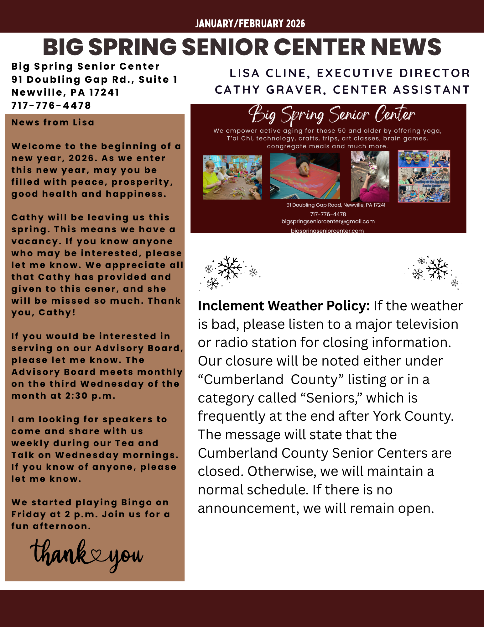 Big Spring Senior Center January - February 2026 Newsletter Big Spring Senior Center January - February 2026 Newsletter Big Spring Senior Center January - February 2026 Newsletter